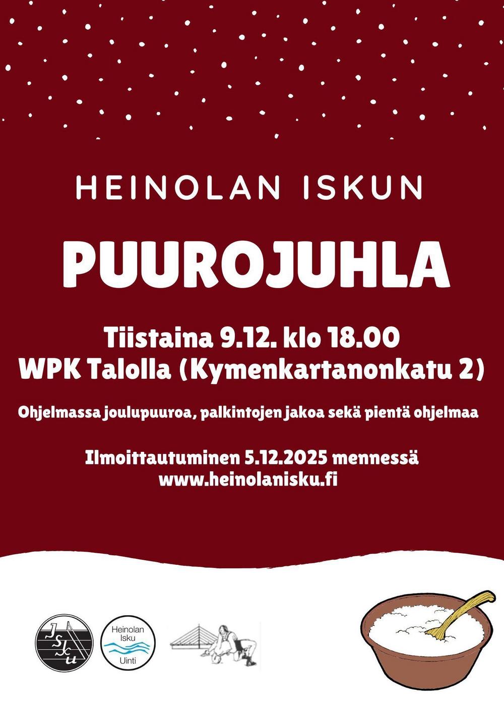 Heinolan Iskun puurojuhla tiistaina 9.12.2025.